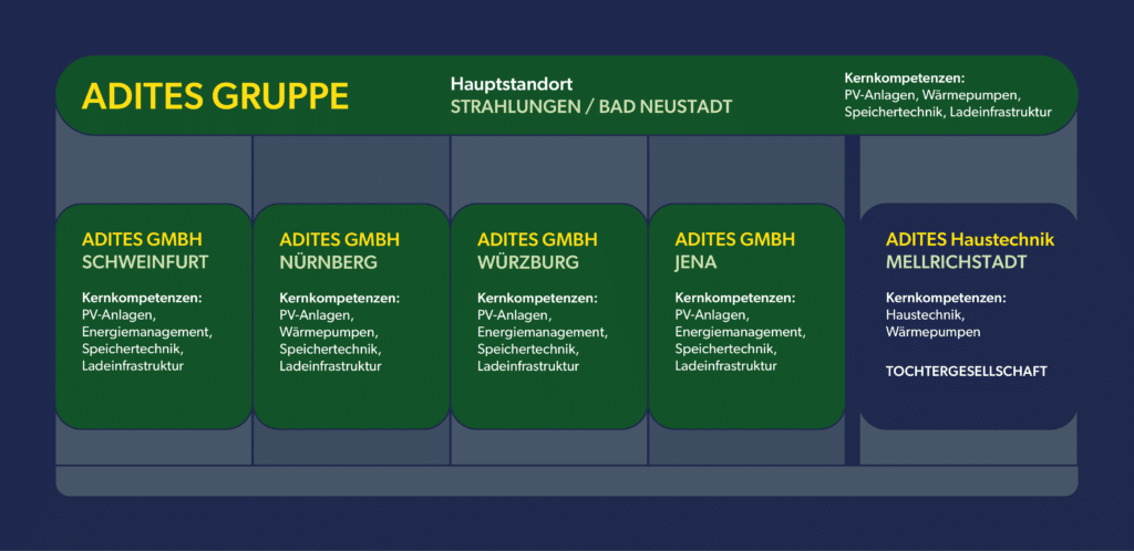 Während Adites.de als überregionaler Energie- und Technologiedienstleister wächst und innovative Lösungen entwickelt, bildet Mellichrichtstadt (neben Nürnberg) das starke regionale Zentrum für Haustechnik, Installation und Kundenservice.